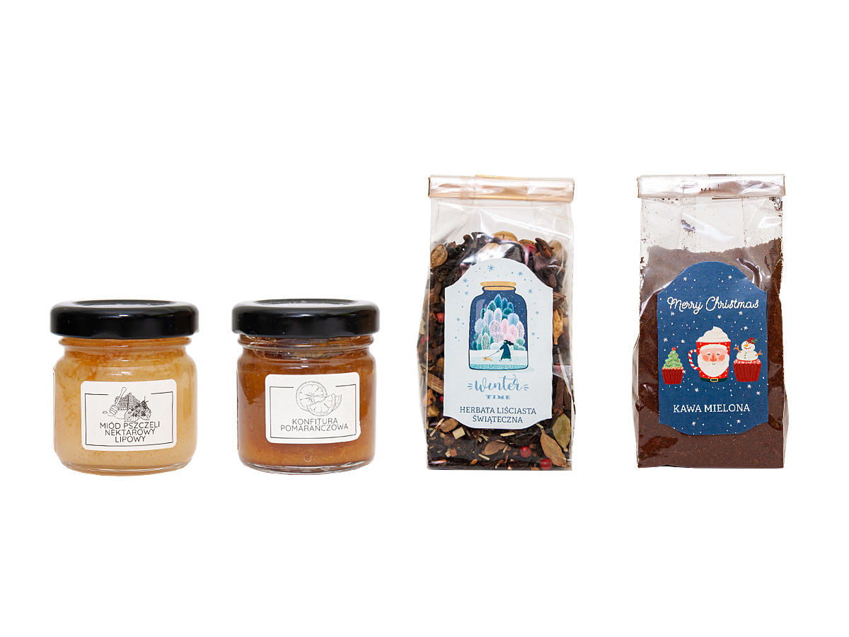 | Shelf life | 12 months (honey and jam); 24 months (coffee and tea) |