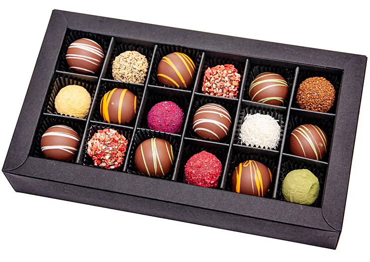 18 hand-made, round, Belgian pralines