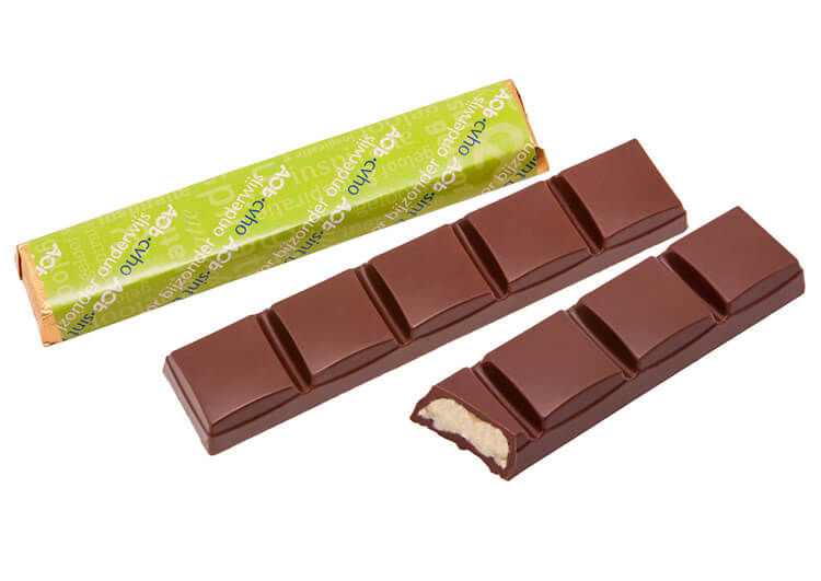 Milk chocolate bars (44% cocoa) with subtly alcoholized filling, available in many flavours.