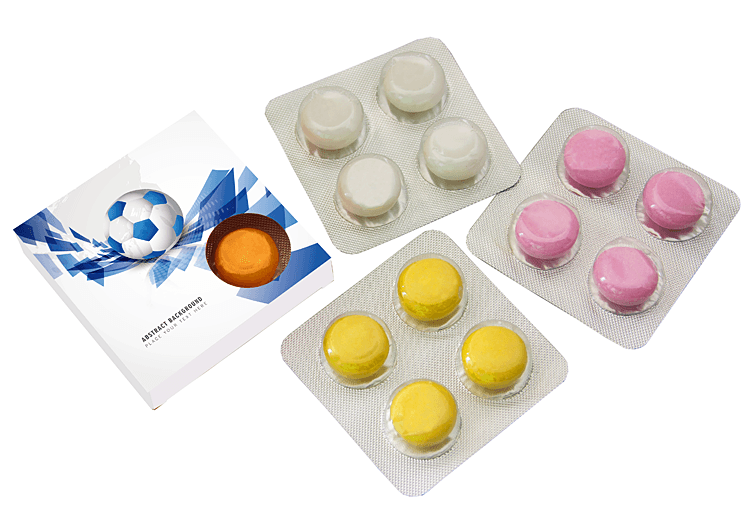 Oryginalne dropsy Mentos pakowane po 4 sztuki w blistry.