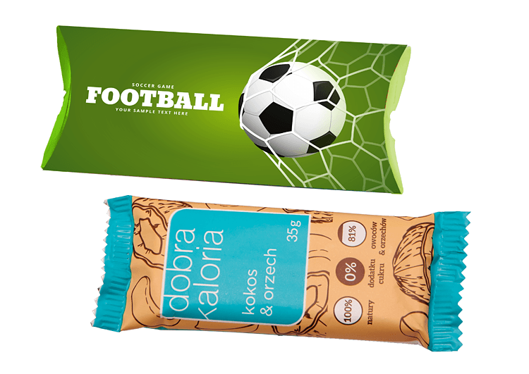 • oryginalne foliowe opakowanie producenta oraz pudełko kartonowe w kształcie poduszki z dowolnym nadrukiem reklamowym CMYK, lub do 4 kolorów Pantone