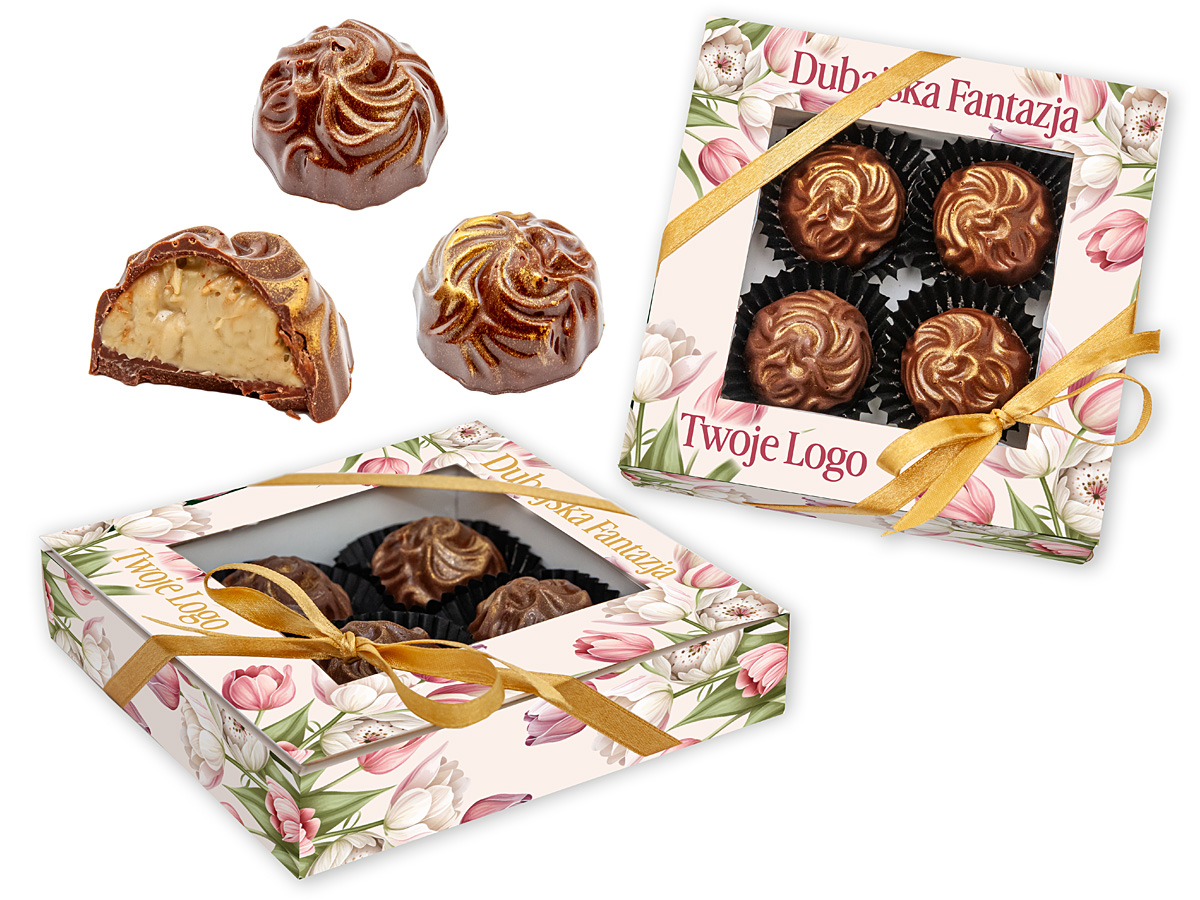 pudełko z metalizowanego kartonu (złotego lub srebrnego) z tłoczeniem,