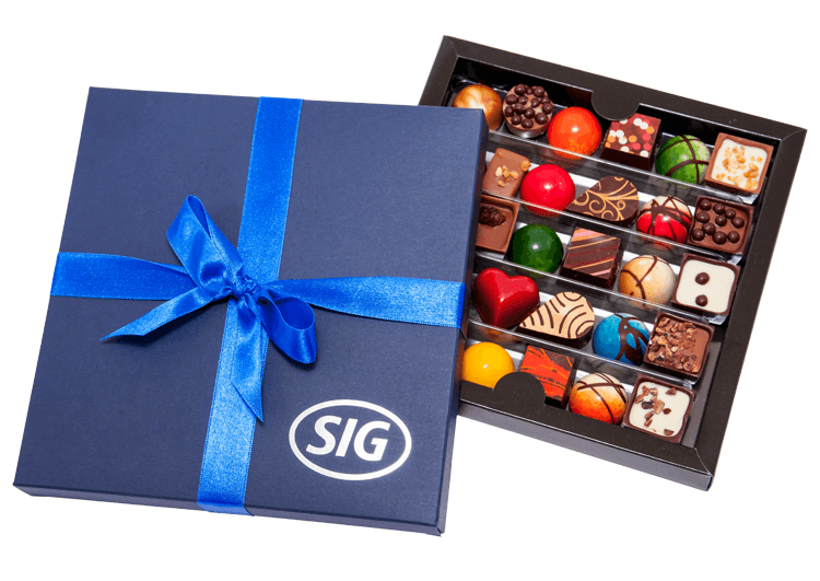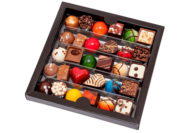 30 ekskluzywnych ręcznie wytwarzanych pralin belgijskich z czekolady mlecznej, deserowej i białej