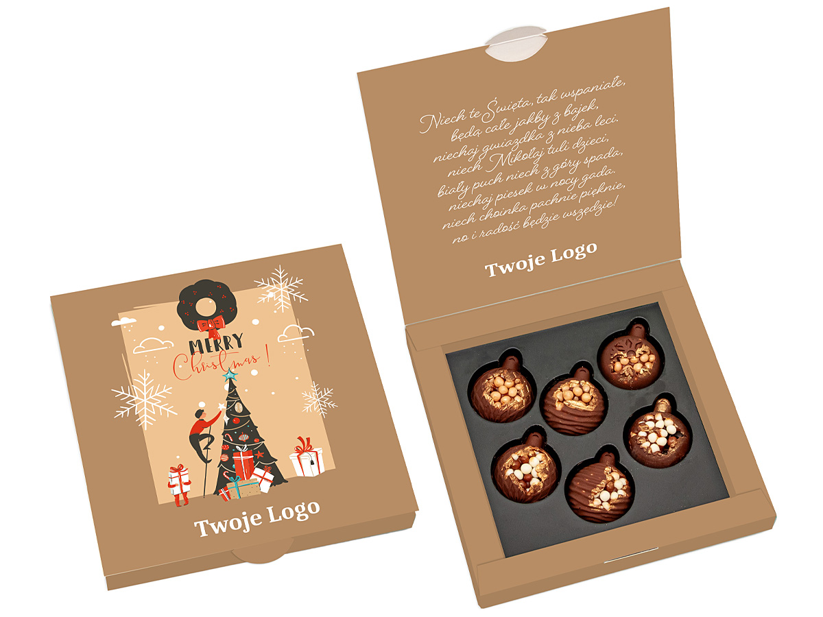 Czekoladowe Bombki to słodycz w najlepszym wydaniu – świąteczny akcent, elegancka forma i smak, którego się nie zapomina. Idealne, by wywołać uśmiech i sprawić, że Twoja marka pozostanie w pamięci na długo.
