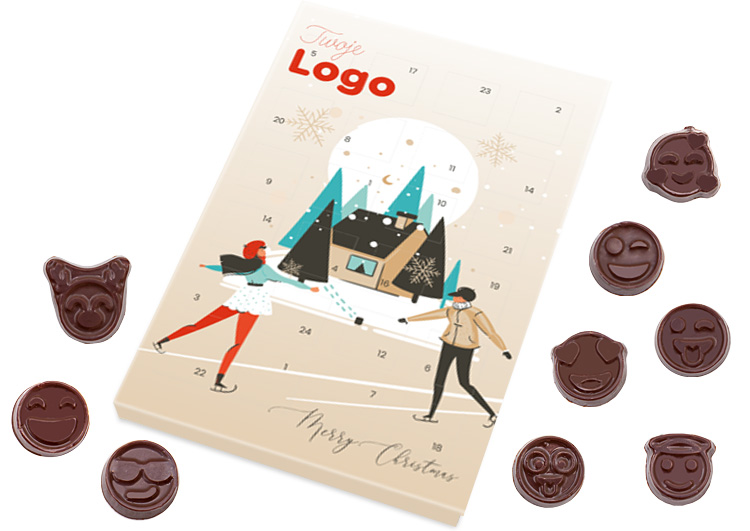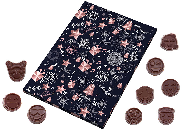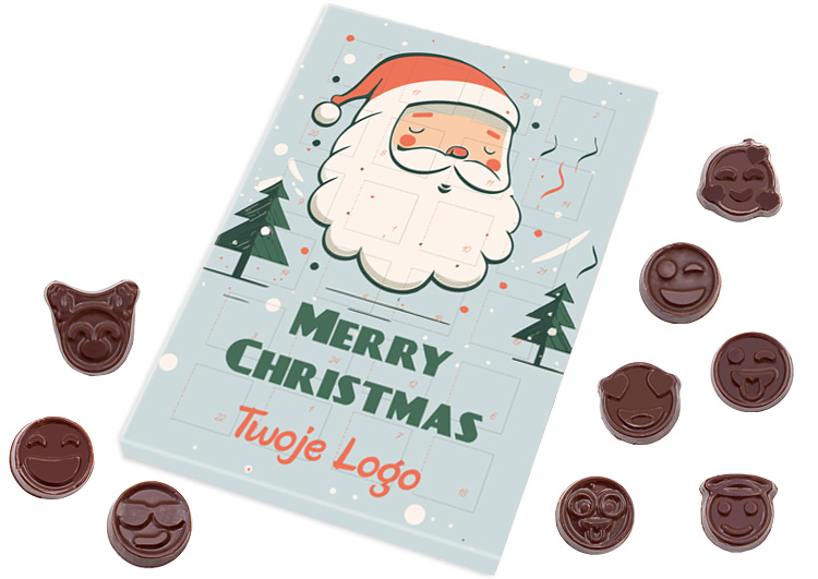 Kalendarz adwentowy zawierający 24 czekoladki w kształcie emotek
