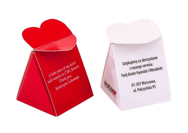 Strona główna Słodycze personalizowane z logo firmy – B&B Słodycze > Oferta > Opakowania > Kartonowe opakowania > Pudełeczko z sercem OK.04