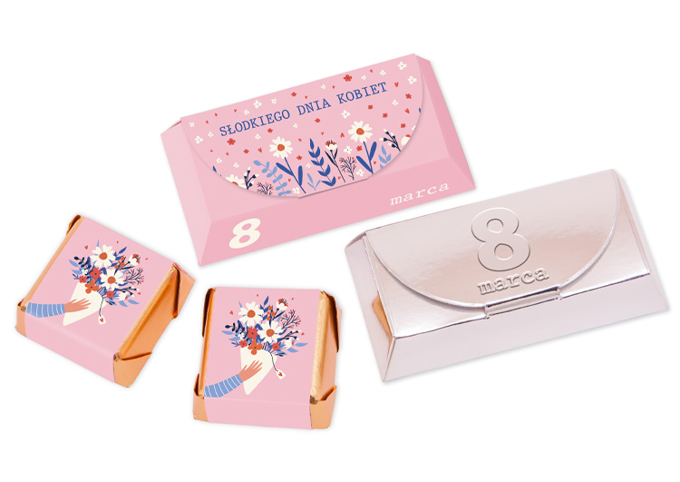 • Zawinięte w złoty laminat oraz obwoluty z nadrukiem reklamowym