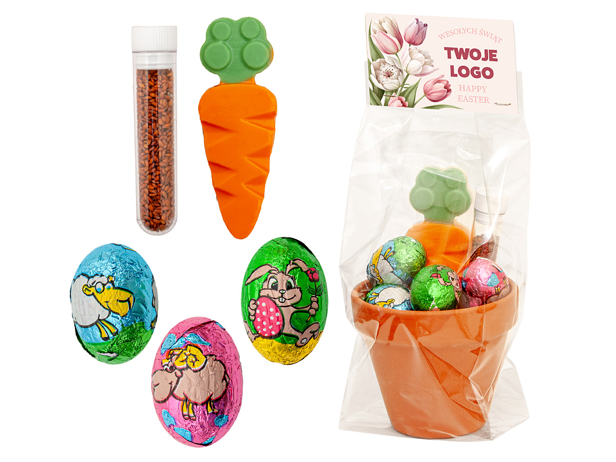 Ceramiczna doniczka ze słodyczami oraz rzeżuchą do samodzielnego zasiania