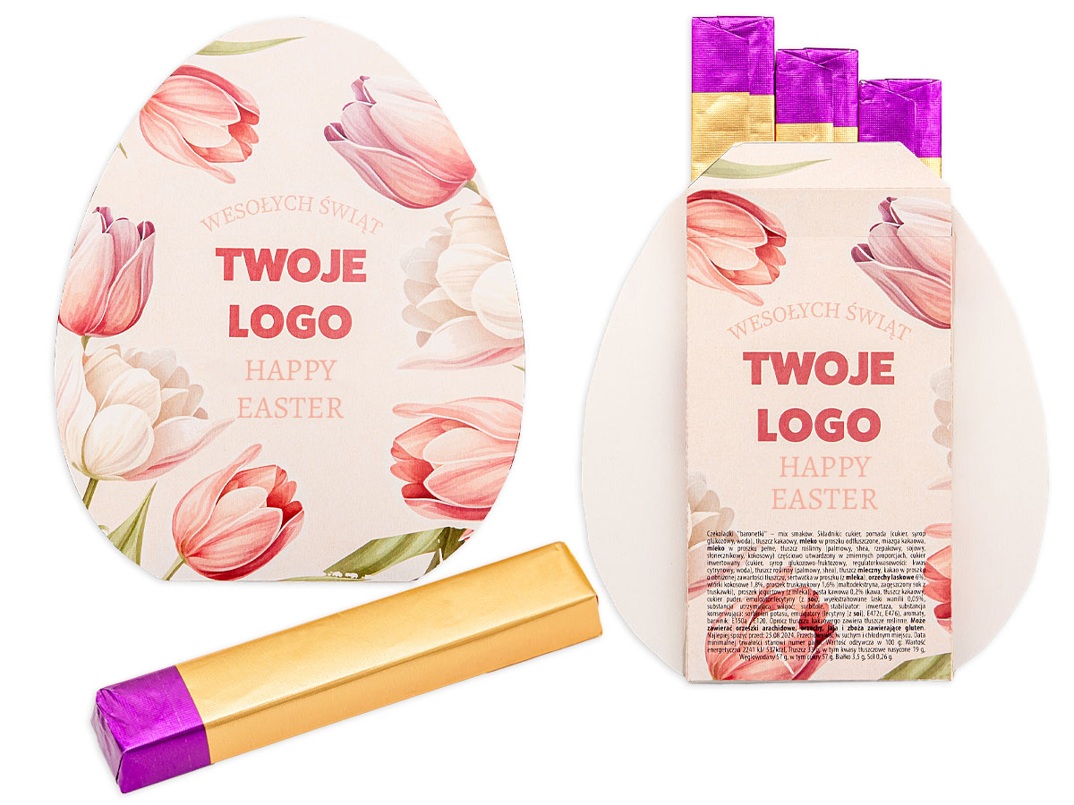 Uroczy mini prezent Wielkanocny zawierający 3 pyszne, podłużne czekoladki