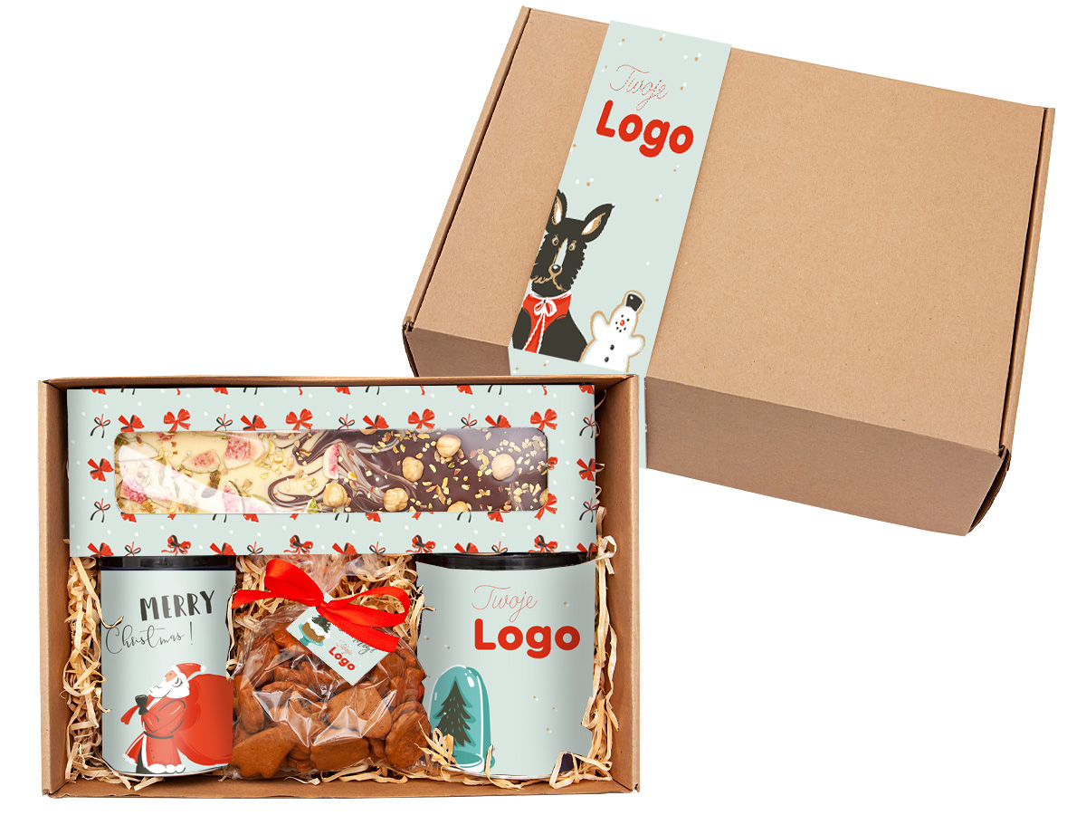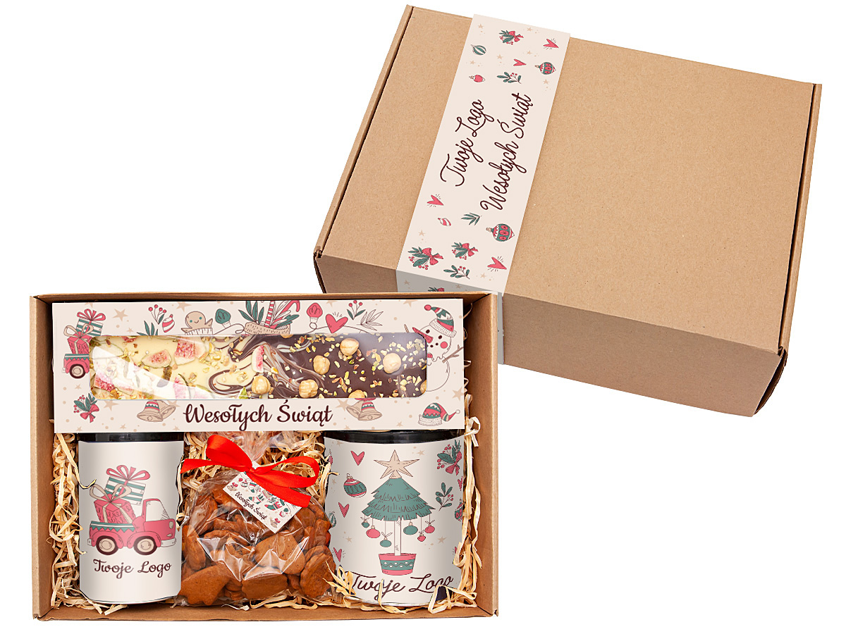 • zawartość zestawu: herbata liściasta świąteczna w tubie 50g (czarne wieczko), kawa mielona w tubie 250g (czarne wieczko), Czekolada Bajeczna 250g (połączenie czekolady mlecznej 44% z białą posypana liofilizowaną figą, orzechami laskowymi oraz pokruszonymi pistacjami), aromatyczne pierniczki w torebce 140g